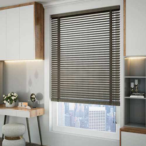 Add warmth and sophistication to your windows with these Vintage Wooden Venetian Blinds in rich Dark Brown. Their timeless design offers both style and practical light control.
