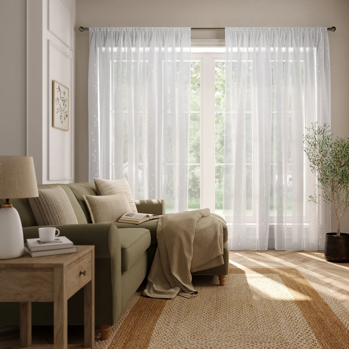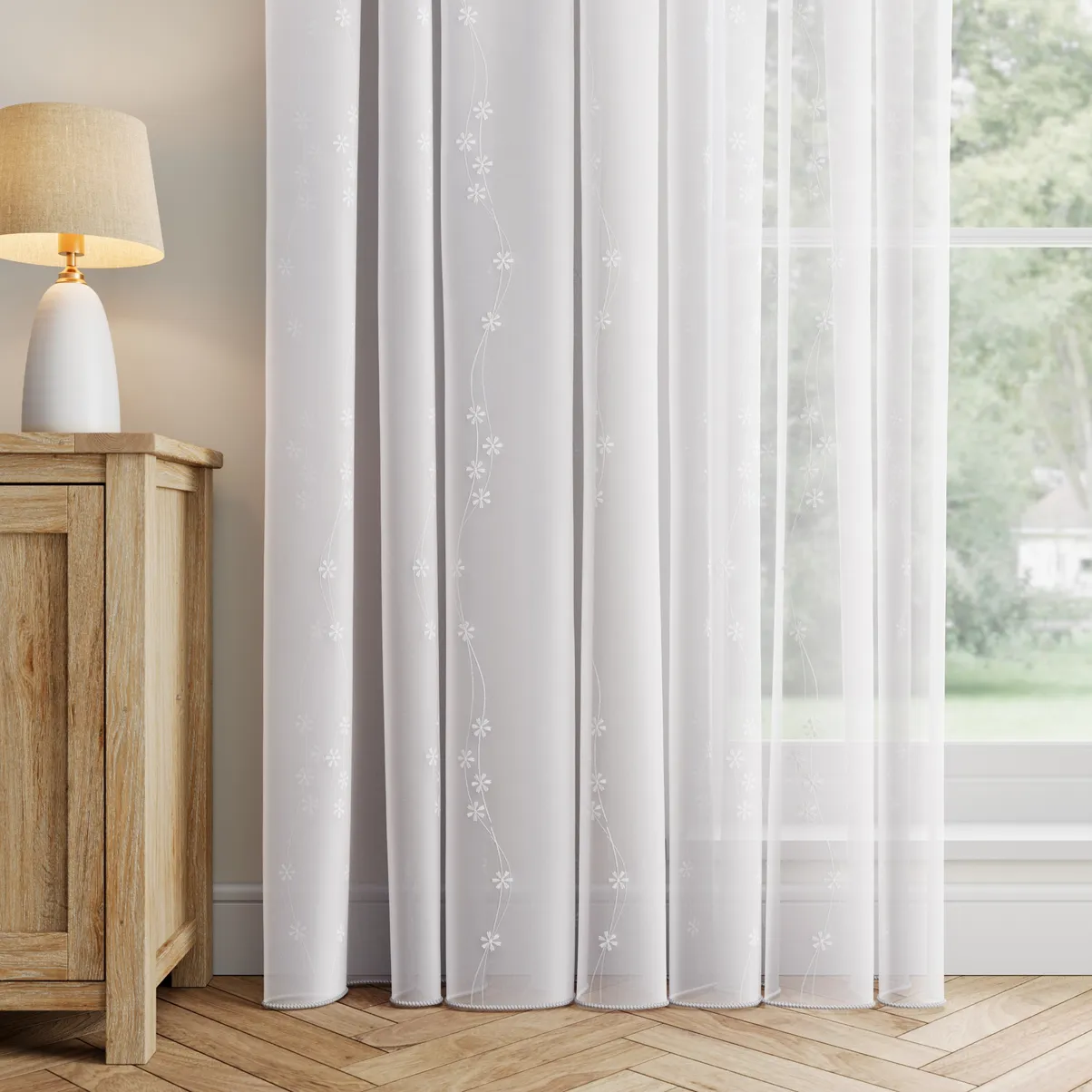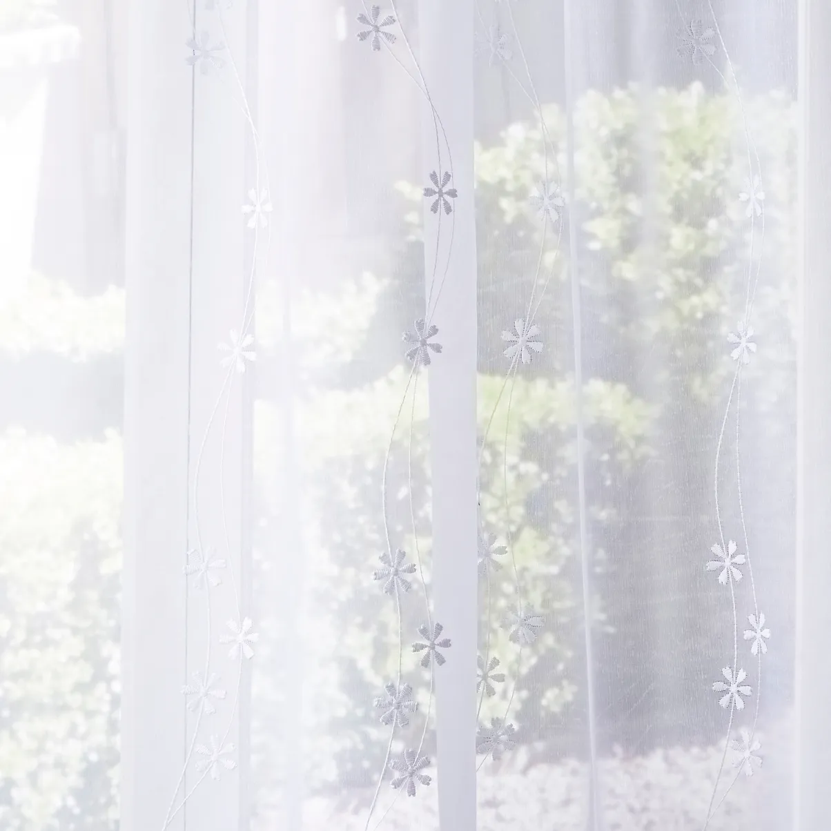 Add a touch of boho charm with this lightweight voile curtain featuring delicate embroidered daisy details. Its airy design allows natural light to flow through while maintaining privacy.