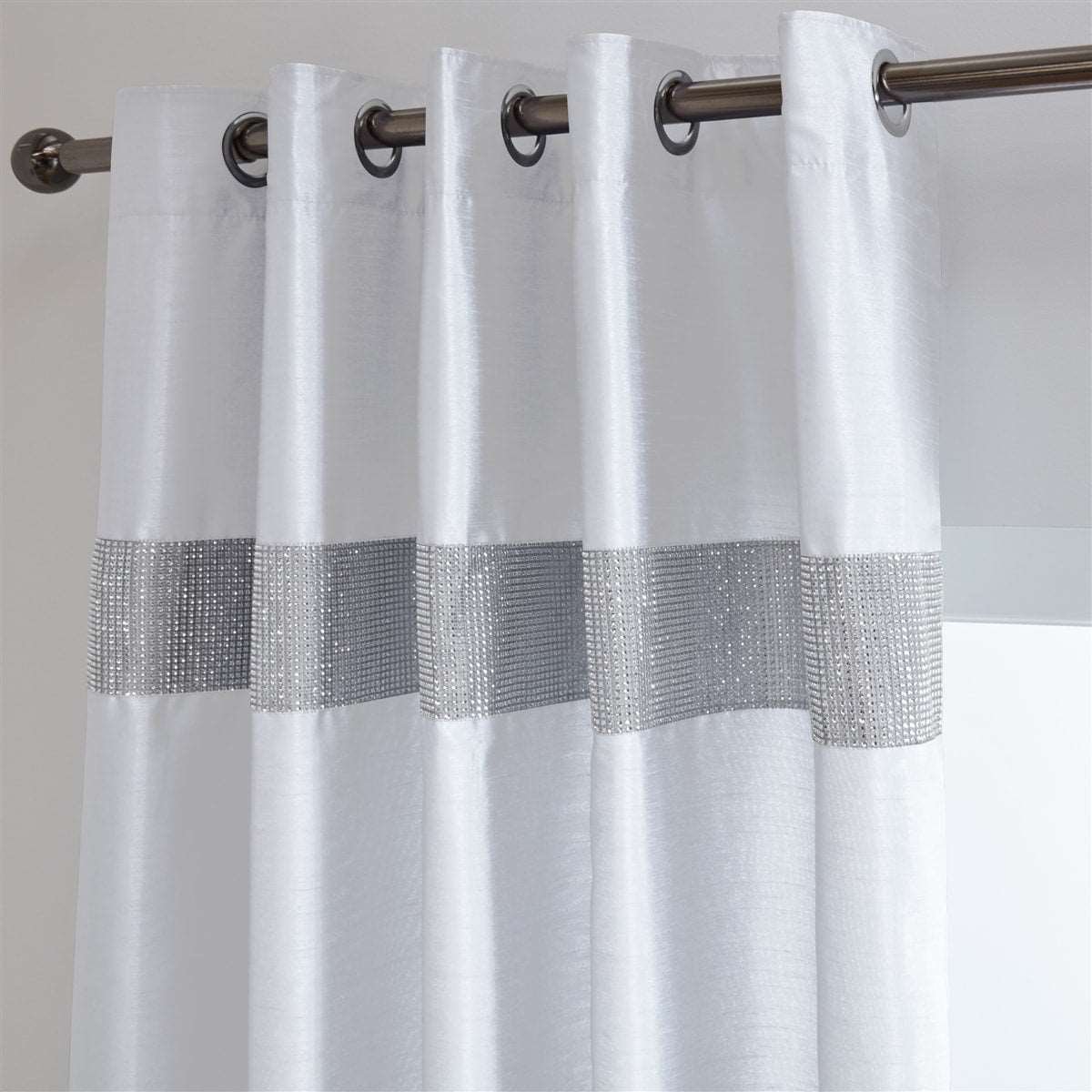 Lined Faux Silk Diamante Eyelet Curtains add a touch of glamour and elegance, combining luxurious faux silk with sparkling diamante accents for a stunning window display.