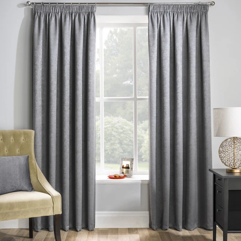 Matrix Thermal Blockout Ready Made Pencil Pleat Curtains in Grey combine style and functionality. Designed to block light and retain warmth, they offer energy efficiency and privacy. The pencil pleat header ensures a neat, elegant drape, making them ideal for modern living spaces.