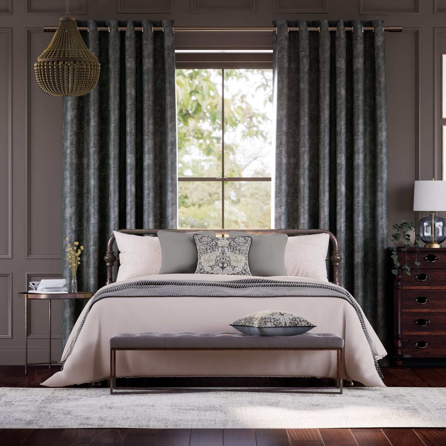 Walcot Chenille Coal Curtains offer a soft, textured chenille fabric in a deep coal shade, providing privacy, insulation, and a contemporary, stylish finish for any room.
