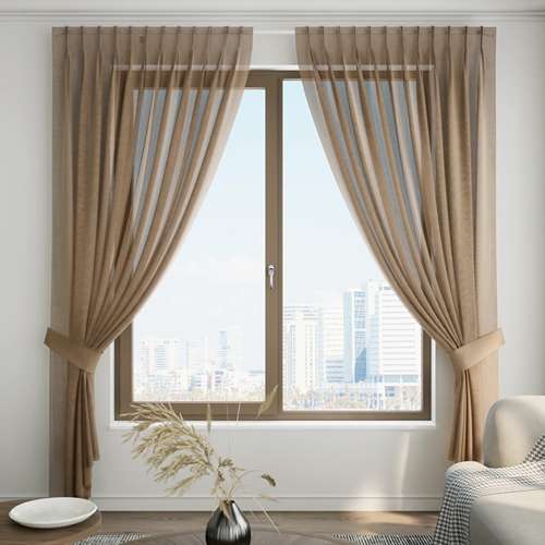 Sheer Curtain – Pinch Pleat – Light Brown